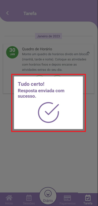 Após o envio, o paciente poderá acessar a tarefa diretamente pelo Aplicativo para Paciente.