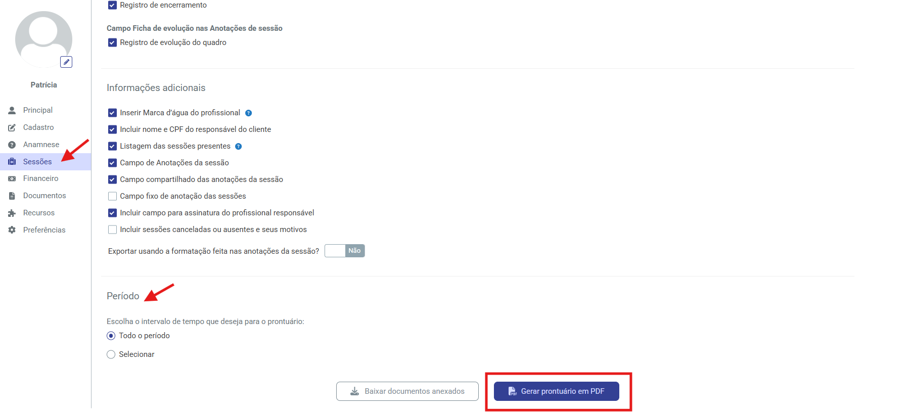 Também é possível exportar os registros dos prontuários por meio do módulo Minha Clínica.